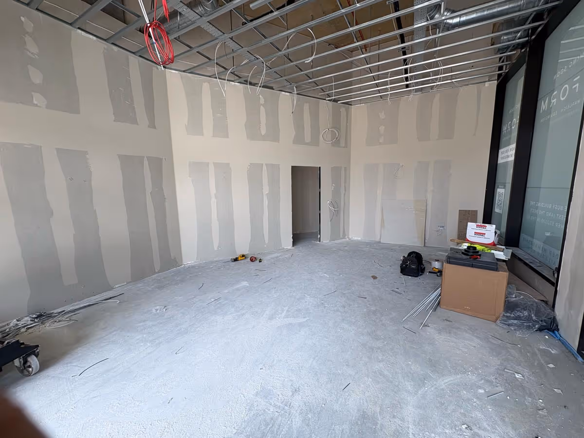 The fit-out comprised two state-of-the-art studios, a reception area, four WCs, two storerooms, and a treatment room.